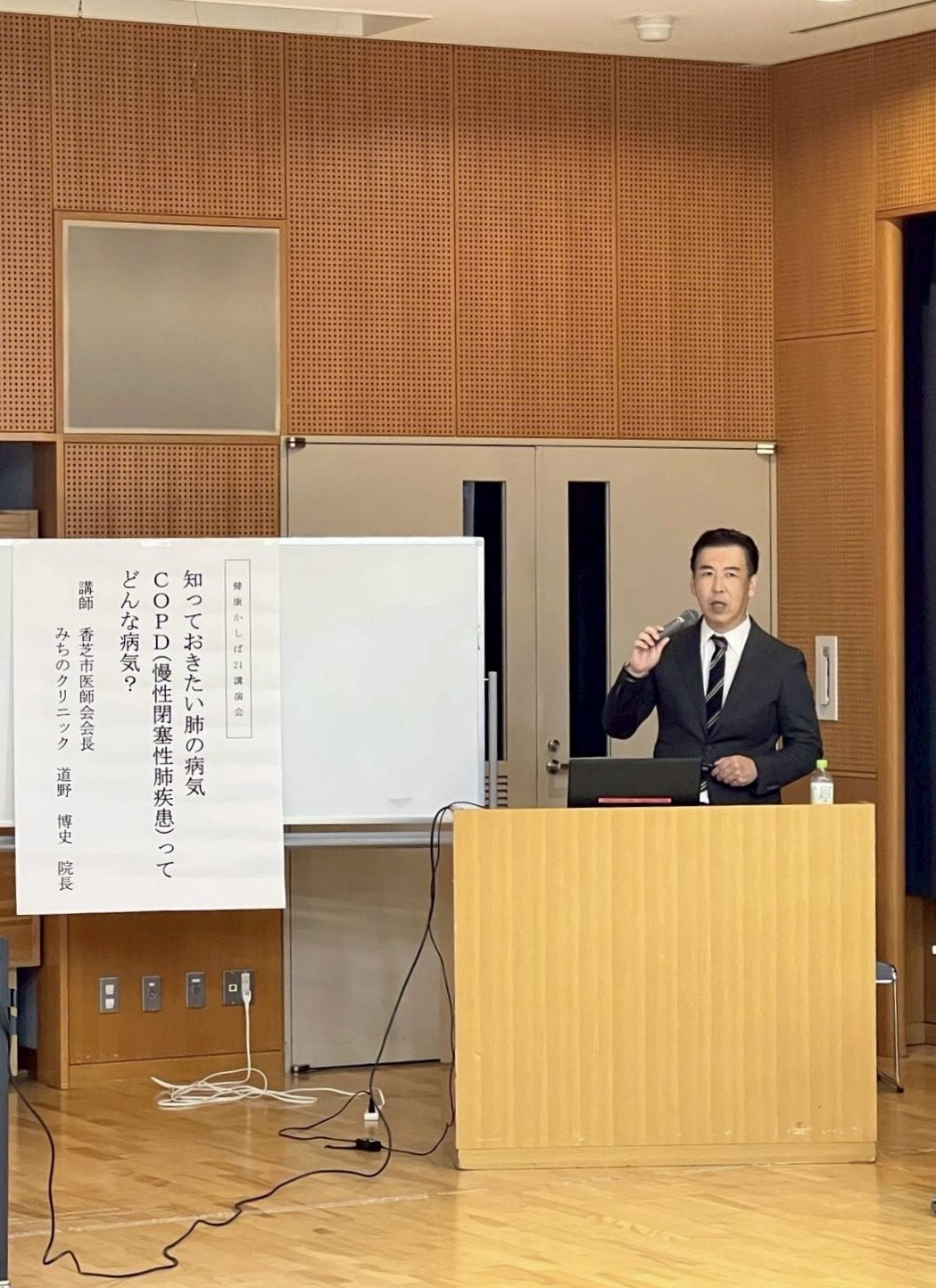 2025年10月18日に開催されました「健康かしば21講演会」にて、当院院長が「COPD 慢性閉塞性肺疾患って、どんな病気?」をテーマに講演を行いました。